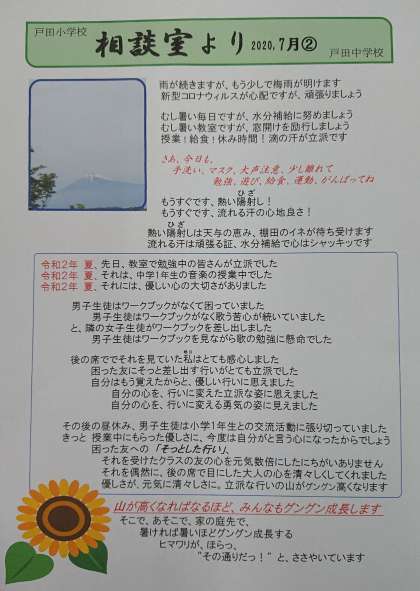 相談室入り口掲示に「相談室だより」を掲示しましたので、時間があるときに読んでみてください。