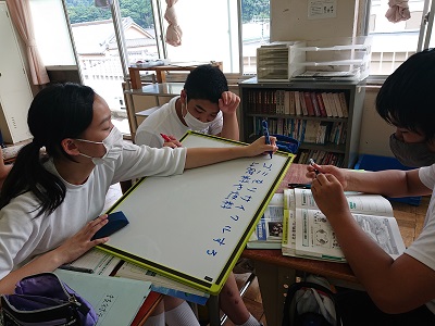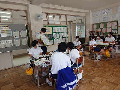 3年生は技術で「生物育成の関する技術」という単元を学習しています。単元のまとめとして、生物育成に関する技術が社会や環境に果たしている役割と影響について話し合いました。