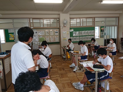 2年生は理科で「穏やかな酸化」について学習しています。熱や光を出さない酸化があるかどうかを個人で考えた後、話し合いました。
