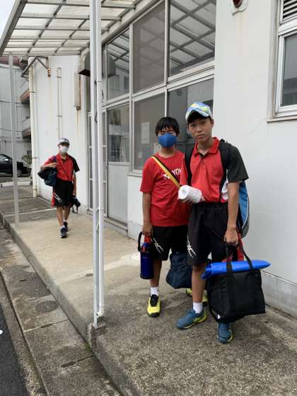 沼津市フレンドリーマッチが開幕しました。男子ソフトテニス部は今沢中会場で試合を行います。