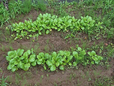 3年生は技術科で「作物の栽培」について学習しています。校舎南側で栽培しているグループの小松菜が、大きく生長しています。