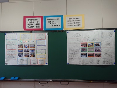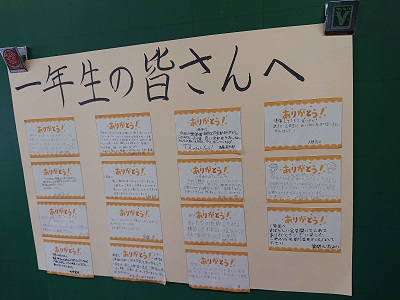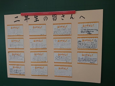 3年生の教室の黒板には、先週行った「3年生を励ます会」でのメッセージが飾られていました。1・2年生の教室には、3年生からのお礼メッセージがありました。