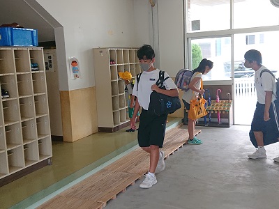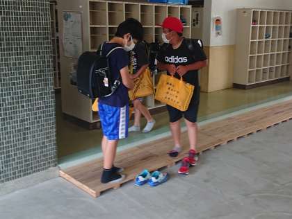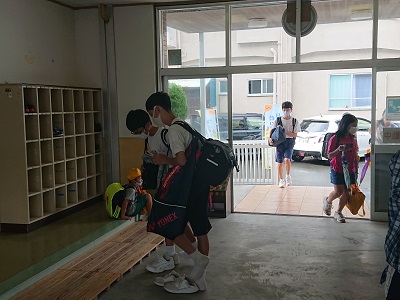 登校の様子です。挨拶を交わした後、3年生は沼津市フレンドリーマッチの様子を話してくれました。