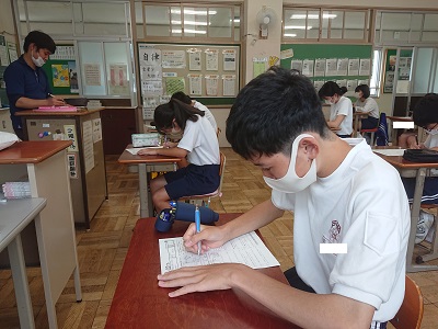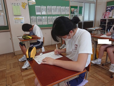 2年生は理科で「化学変化と原子・分子」という単元を学習しています。既習事項の確認として単元テストを行いました。