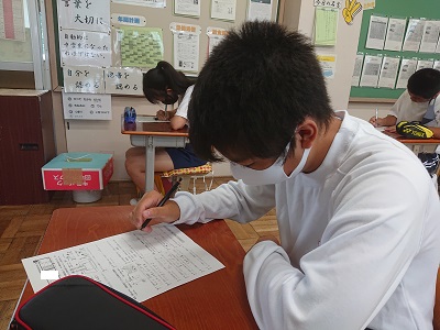 2年生は理科で「化学変化と原子・分子」という単元を学習しています。既習事項の確認として単元テストを行いました。