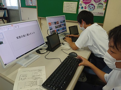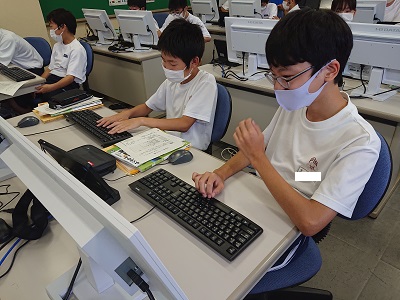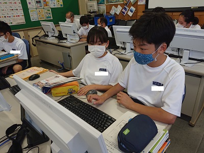 1年生は社会で「世界各地の人々の生活と環境」について学習しています。今日は、世界各地の人々の生活の様子とその変化を自然環境などと関連づけて、パーソナルコンピュータを使ってレポート作成を行いました。