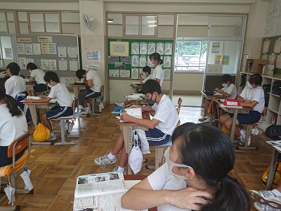 3年生は社会で「昭和恐慌と政党内閣の危機」について学習しています。世界恐慌は日本にどんな影響を与えたのかを教科書や資料集を使って調べ、分かったことを紹介し合いました。