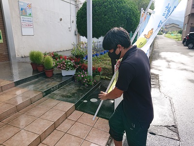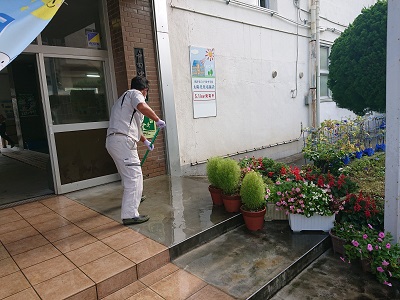 生徒登校前に教職員が迎え入れるための諸準備を行っています。