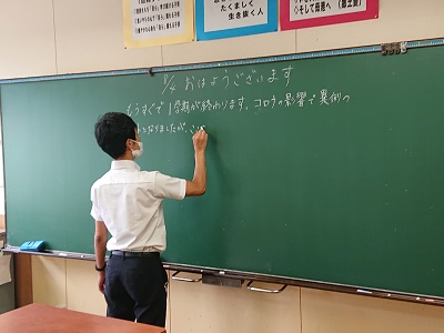 生徒登校前に教職員が迎え入れるための諸準備を行っています。