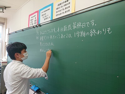 生徒登校前に教職員が迎え入れるための諸準備を行っています。