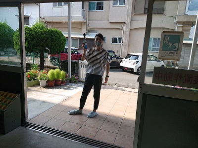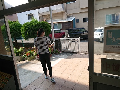 小学校養護教諭が、WBGT(暑さ指数)の測定を行っています。朝から温度は上昇しています。