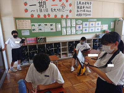 1年生は英語で、タブレットパソコンを使ったオンライン授業で英会話活動を行いました。