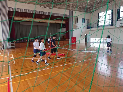 バレーボール部が練習を開始しました。体育館内のWBGT(暑さ指数)を上がっているきていることから、水分や休憩をとりながら練習をしていきます。