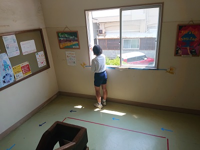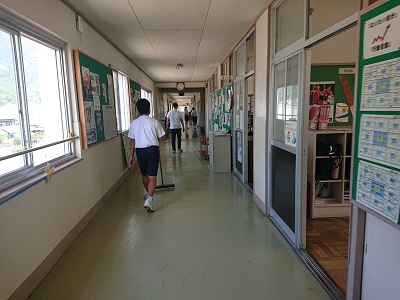 昼の清掃活動の様子です。校舎内をきれいにしています。