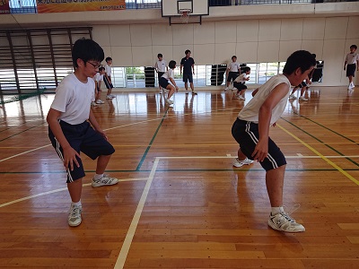 グラウンドのWBGT(暑さ指数)が31を越えていますので、体育館で男女ソフトテニス部が練習をスタートしました。水分や休憩をとりながら活動をしていきます。
