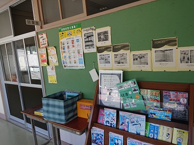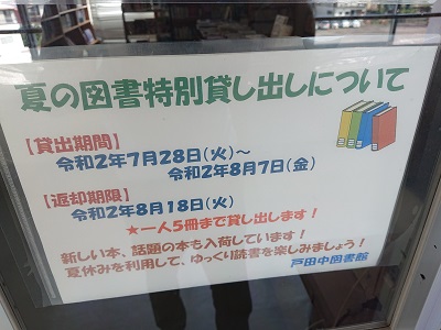 学校図書館掲示です。夏休み用の本の貸し出しは明日も行っています。