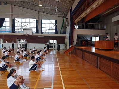 3つ目は「部活動のこと」です。僕は、どの部活に入ろうか迷っていましたが、兄が楽しそうにプレーするテニスに興味が湧いたので、テニス部に決めました。初めての部活動は心配でしたが、先輩方が丁寧にコートの作り方やラインカーの使い方、ラケットの振り方などを教えてくれました。だから、安心して練習に参加できました。ありがとうございました。