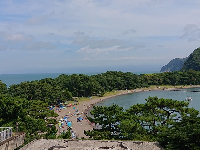 御浜海岸では、海水浴に訪れている方がたくさんいらっしゃいました。遠くに富士山を望むことができました。