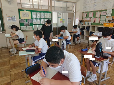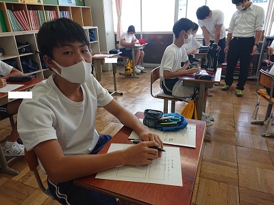 3年生は、それぞれが「2学期の目標」の記入を行っていました。
