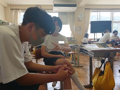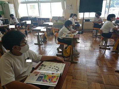 1年生は美術で「美しい構成と装飾」という単元を学習しています。ふだん見慣れた自然物や人工物を形と色で構成する活動を始めました。