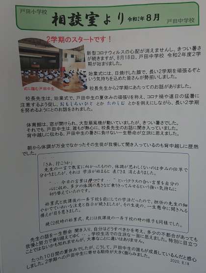 相談室入り口掲示に「相談室だより」を掲示しましたので、時間があるときに読んでみてください。