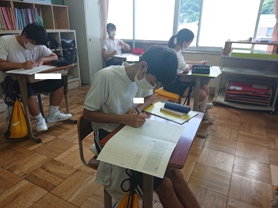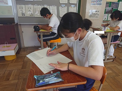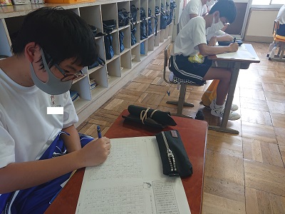 3年生の潮風タイムの様子です。全学年で「天声こども語の視写」を行っています。みんな文章をじっくり読み、丁寧に書いています。