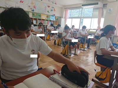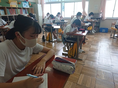 3年生は英語で既習事項の確認として、渡部先生が出した問題を解いていました。