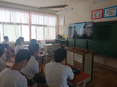2年生は国語で、夏目漱石の「坊っちゃん」について学習しています。今日は本文理解の確認として、昨日に引き続きビデオを視聴しました。