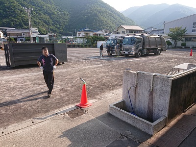 古紙回収業者のトラックが到着し、作業が開始しました。