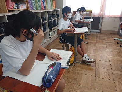 2年生は国語で「走れメロス」について学習しています。今日は本文を読んだ後、メロスとディオニスの初めの心情について話し合いました。