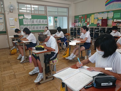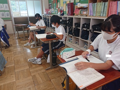 2年生は国語で「走れメロス」について学習しています。今日は本文を読んだ後、メロスとディオニスの初めの心情について話し合いました。