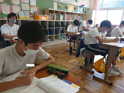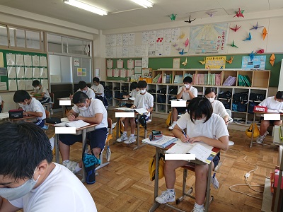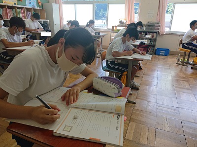 3年生は数学で「2次方程式」について学習しています。今日は、「解の吟味をして答えを出す」という活動を行っていました。