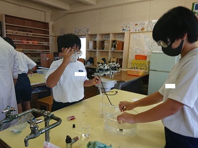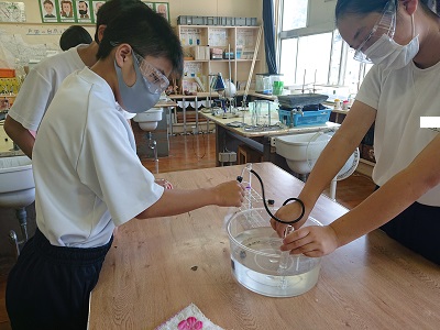 1年生は理科で気体について学習しています。今日は、水素という気体を調べる活動をしました。