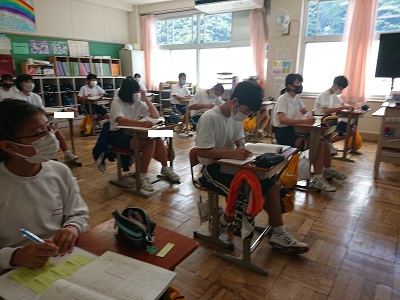 2年生は国語で「走れメロス」について学習しています。今日は本文を読んだ後、走っている時の3人の変化について話し合いました。