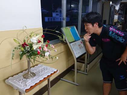 小池先生が1階職員室前に、ヨーロピアンフラワーアレンジメント「フリーセント」を飾ってくれました。いつもありがとうございます。
