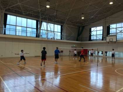 男子ソフトテニス部は、雨天のために体育館で練習を行いました。今日は基礎トレーニングを中心に活動しました。