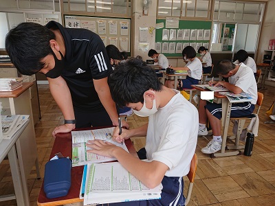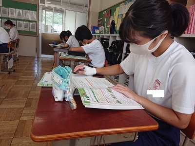 2年生は英語でto不定詞について学習しています。今日は、動作の目的について英語で説明できるよう考えました。