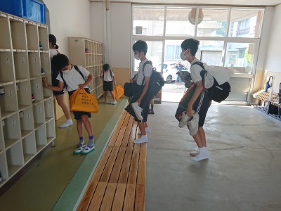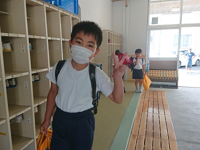 登校の様子です。子どもたちが元気に登校してきました。今日も一日がんばりましょう。