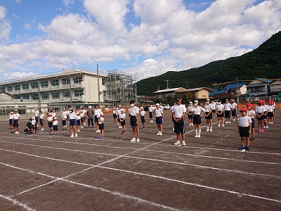 本日、2回目の「小中合同運動会総練習」を実施しました。小中の子どもたちがグラウンドに勢揃いしました。