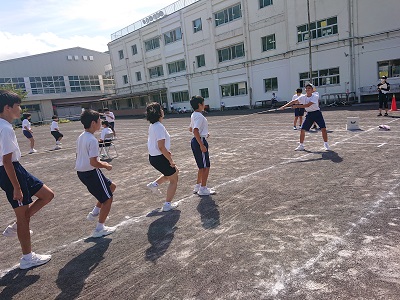 中学生種目(大縄跳び)を実際に行ってみました。どこのチームがたくさん跳ぶでしょうか?