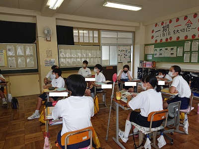 1年生は社会で日本の歴史について学習しています。今日は「縄文人と弥生人はどちらが幸せか」というテーマのもと、映像や教科書、資料集などを使って、意見交流をしました。