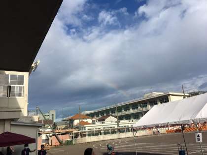 小中合同運動会開会前、校舎西側に大きな虹がかかりました。今日は、きっとよいことがありますね。