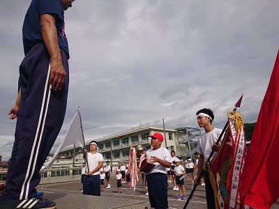 白組の小中団長さんが、優勝旗・優勝杯の返還をしました。