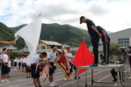 白組の小中団長さんが、優勝旗・優勝杯の返還をしました。
