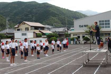 小学校教頭が励ましの言葉を贈りました。