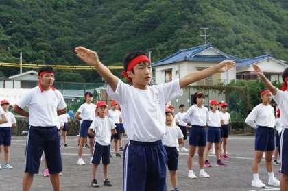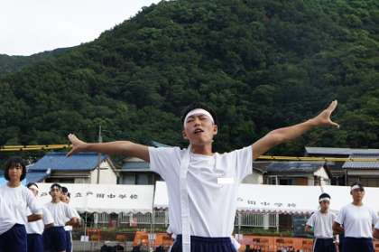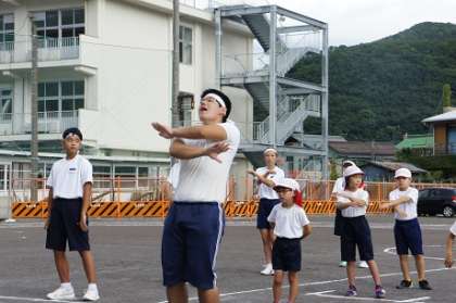 小1から中3までの9学年が揃っての全体応援を行いました。