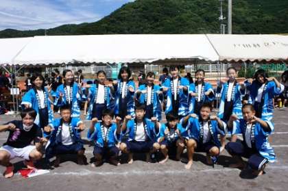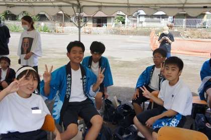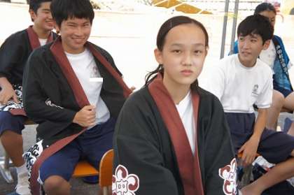 中学生全員で、代々受け継がれてきている「戸田中ソーラン」を踊りました。踊る前のテントでの様子です。