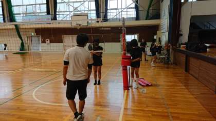 女子バレーボール部は、本校で練習を行いました。来月の新人戦大会に向け、全員が呼吸を合わせて活動しました。