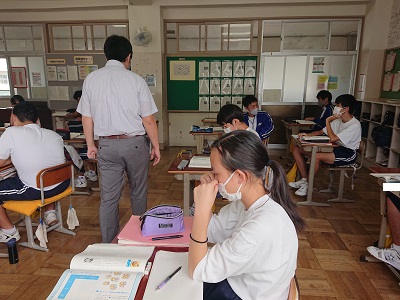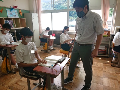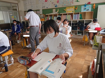 3年生は国語で、別役実 著作の「寂しいお魚」という教材を学習しています。本文を読み込んだ後、個々で意見を書きました。この後、初発の感想を友達と伝え合う活動をしました。