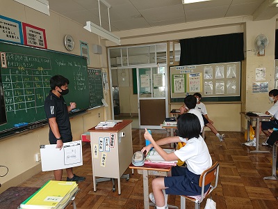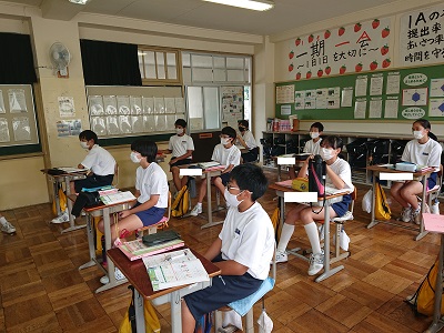 1年生は英語で「三人称単数」について学習しています。既習事項の確認を行っていました。